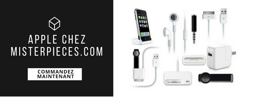 Misterpieces.com, spécialiste de la pièce détachée et accessoire électroménager, vous propose désormais un large choix d’accessoires d’origine constructeur Apple pour vous accompagner au quotidien: écouteurs Earpods, câble Lightning USB, chargeur et souris pour MacBook, adaptateur secteur ou encore câble de charge magnétique pour vos Apple Watch.